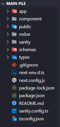 The rest of the files are .gitignore, next-env.d.ts, tsconfig.json, next.config.js, package-lock.json, package.json and readme file.